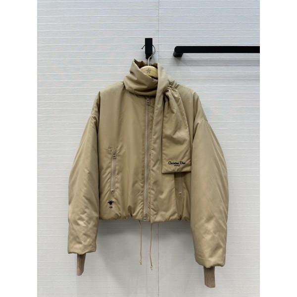 디올 신상 퀼팅 패딩 재킷 자체 탈부착식 머플러로 따뜻하고 스타일리쉬하며 루즈한 짧은 컷팅으로 날씬해 보이고 쉽게 몸매 비율을 늘려주며 캐주얼하고 우아함 바람막이 니트 소매 디자인, 수입 메모리 나일론 원단 사이 면 수입기 틈새에 디피 덩굴 무늬 제작 품질로 디테일을 볼 수 있음 36사이즈: 어깨끈, 가슴둘레130, 총장54