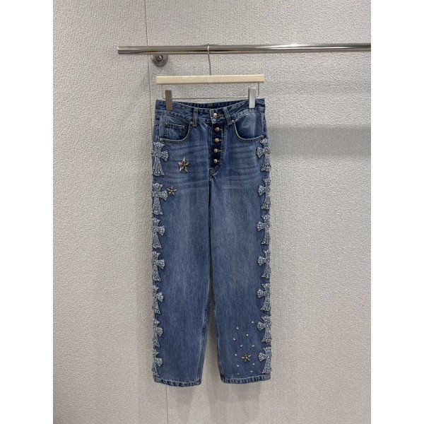 크롬하츠 25 신상 칸 한정판 데님 팬츠 클래식한 워싱 데님 바탕에 브랜드 크로스 실버와 큐빅 자수 스타라이트 메탈 장식으로 포인트 스트릿 펑크와 고급스러움이 조화를 이룸 루즈한 일자핏은 다양한 체형에 적합하며 칸이 한정한 희귀한 속성이 소장 가치를 더해주어 개성을 드러내는 하드코어 럭셔리 아이템