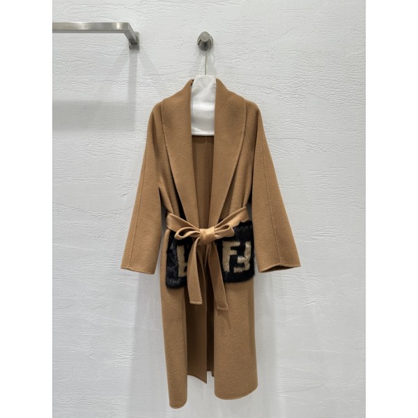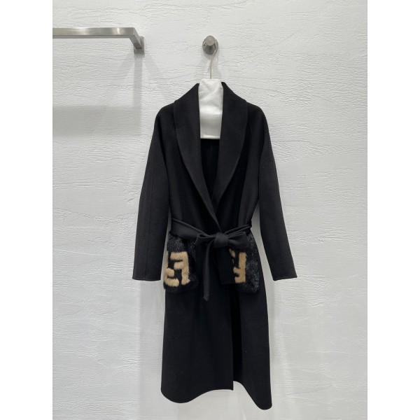 FENDI 핸드메이드 롱 캐시미어 코트 매장 동시 판매, 오리지널 주문 제작 수입 밍크 모피 순수 핸드메이드 FF 레터링 밍크 포켓 순수 핸드메이드 스티치 공법으로 수입 캐시미어 원단이 넉넉하고 스타일리시함 3D 입체 컷팅으로 완벽한 H라인 몸매가 날씬해 보여요 깔끔하고 우아하게 고급스러움 완벽한 작업 품질은 디테일을 보세요 S사이즈: 가슴둘레116, 어깨끈 소매길이70, 총장115