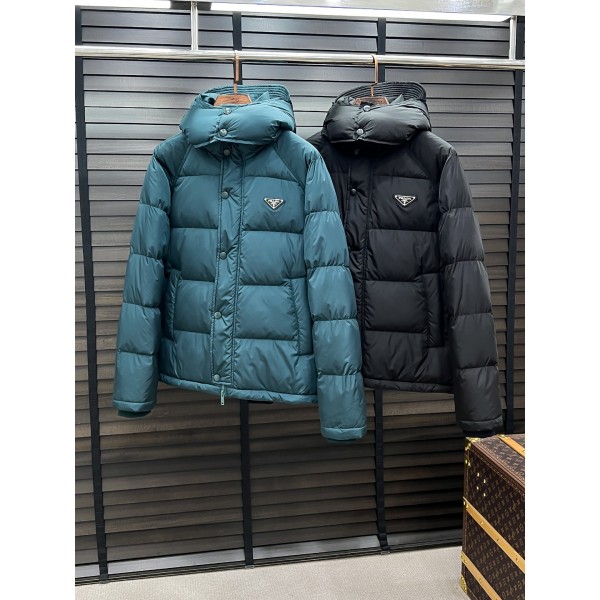 프라다 25 신상 패딩 전문 매장의 첨단 방수 원단, 내부는 90%의 흰 거위털로 충전 편안하고 따뜻하며 색상은 통통하고 매혹적 가공은 매우 정교하고 엄격하며 라인은 깔끔함 상체가 부해 보이지 않고 완전 멋스러움