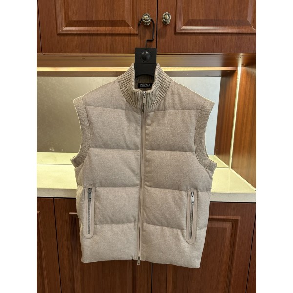 제냐 2025 가을 겨울 신상 패딩 베스트 최신형 동시 발매, 외국무역회사의 주문 스탠드 칼라 캐시미어 니트 양모 패딩 조끼 앞부분은 수입 양모 캐시미어 원단을 사용하여 부드럽고 섬세함 100% 캐시미어 양모 실 원단을 접합하여 보풀이 일어나기 어려우니 안심하고 착용할 수 있음 내부 국가 표준 90% 화이트 구스다운 + 10% 모판 순정 금속 부자재, 원표 워싱 밀 헤드, 삼표 모두 갖추고 있음