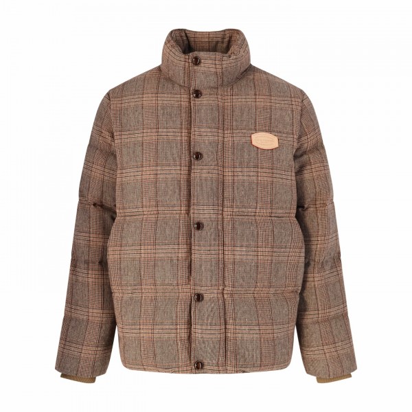 LV 26SS 이른봄 체크 하이넥 패딩 오리지널 33,000 구매하여 개발 루이비통 트위드 다운 블루종 컬렉션 제품으로 영국식 사비에르 스트리트 클래식한 체크 트위드 모티브로 알파카 58%+울 27%+폴리아미드 15%의 혼방 원단으로 다크 베이지 브라운 체크무늬가 빈티지한 젠틀함을 선사함 차이나카라 디자인에 시보리 소매와 스판 하단으로 밀착 LV 고성능 에코 다운, 재생 폴리에스테르 패딩으로 채워져 있어 가볍고 따뜻하며 친환경적인 속성을 겸비하고 있으며 버튼 여밈 지퍼로 바람막이 성능을 더욱 높여줌