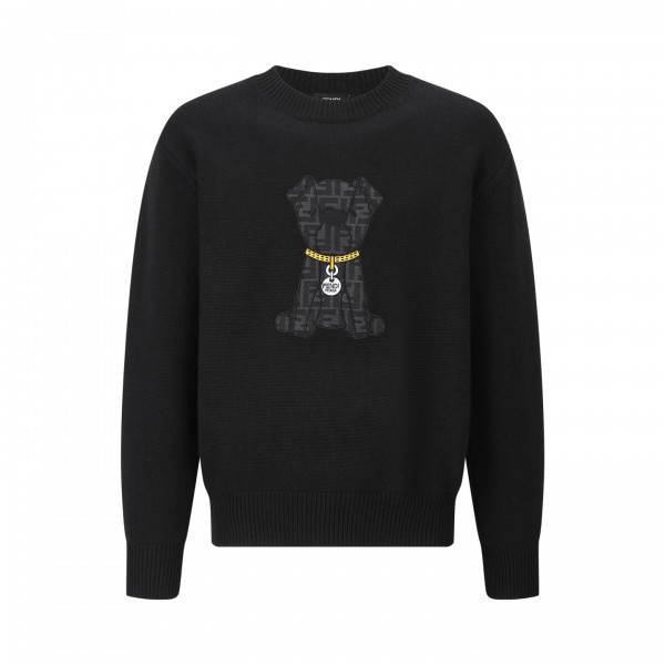 펜디 강아지 와펜 자수 로고 니트 겉감은 울 50%, 면 40%, 폴리에스터 10% 가슴 퍼피 패치 원단은 실켓 옥스퍼드 면 거즈로 주변은 자수로 감싸고 FENDI 로고로 장식 스탠다드 커팅 라운드 풀오버 크리에이티브 디렉터 Silvia VenturiniFendi의 애완견 lto에서 영감을 받은 블랙 FF 자카르 빅 패치 맞춤 제작