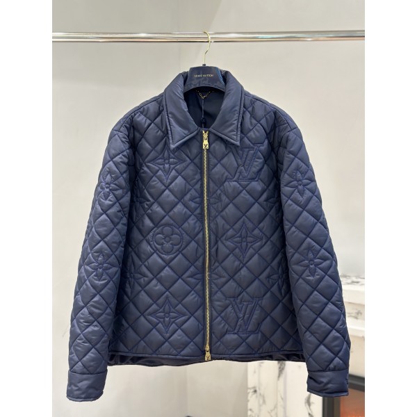 LV 퀼팅 점퍼형 패딩 캐주얼핏 다이아몬드 퀼팅에 입체적인 다크 무늬가 숨어있음 골드 컬러의 철물 지퍼, 디테일이 화사한 질감 레이어드 투웨이 지퍼 플렉시블 디자인 충전재 폴리에스터 100%