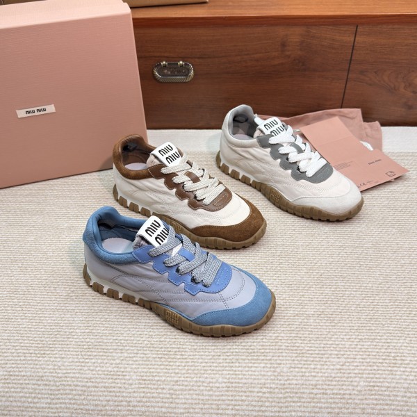 미우미우 26ss 봄여름 신상 스니커즈 Miu Miu Tyre 스니커즈는 인기 신발 중 하나 두꺼운 바닥 디자인에서 유래했으며 패션 감각과 편안함을 겸비하여 아방가르드하고 대담한 디자인 겉감 아웃도어 오리지널 주문 제작 패딩 안감 징검다리 양가죽 오리지널 고무 논슬립 아웃솔