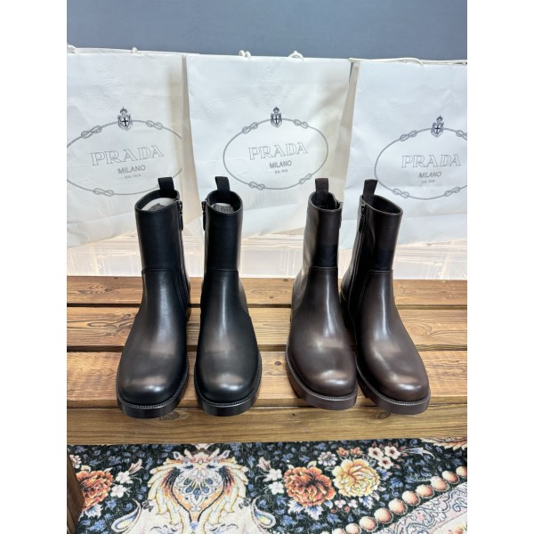 프라다 26ss 봄여름 신상 앵클부츠, 최상급 버전 겉면에 수입 소가죽, 안감에 징검다리 소가죽 오리지널 몰드창