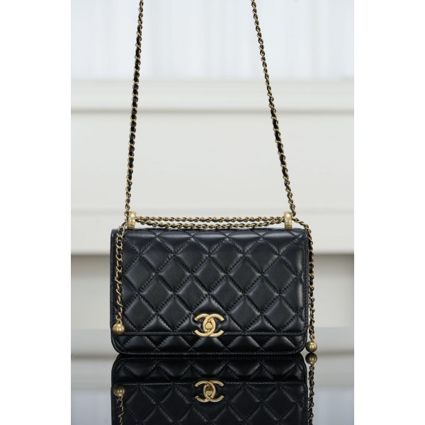 샤넬 25s 체인지갑 샤이니 카프스킨 골드볼 체인은 다양한 길이 조절이 가능한 업스타일 빈티지한 메탈릭으로 위트있는 아이템 반짝이는 송아지 가죽으로 세련되고 우아함 용량은 휴대폰과 일상용품을 넣을 수 있음 모델번호: ap2289 사이즈: 12x19x3.5cm