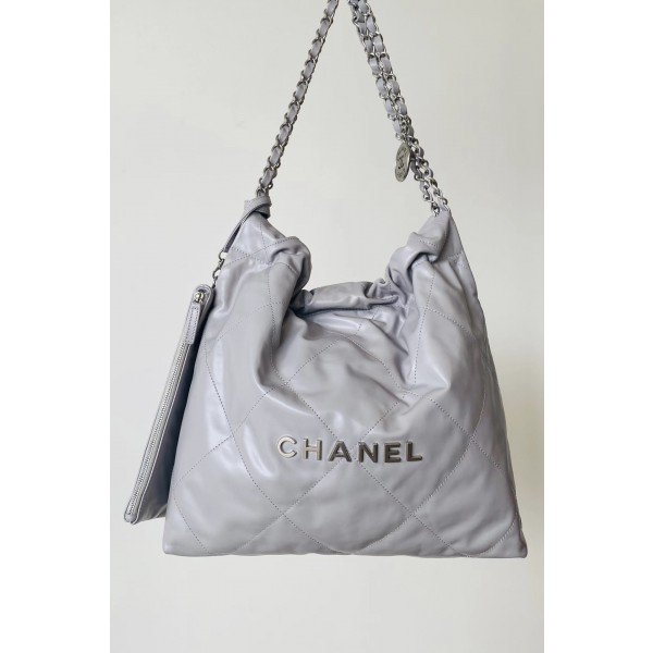 샤넬 22 bag 미디움 사이즈 연회색 실버 독점 오리지널 몬테벨로 소태아 연회색 가죽 모델번호 as3261 사이즈 35x35x8x42cm