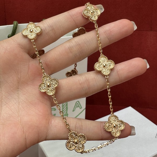 VCA 희귀 용암 핫금 열꽃 목걸이 이 팔찌의 첫 번째 눈, 숨 막히는 대비미 금박 용암공예의 결이 섬세하고 질감이 있음 로즈골드는 여성 액세서리의 첫 번째 색상
