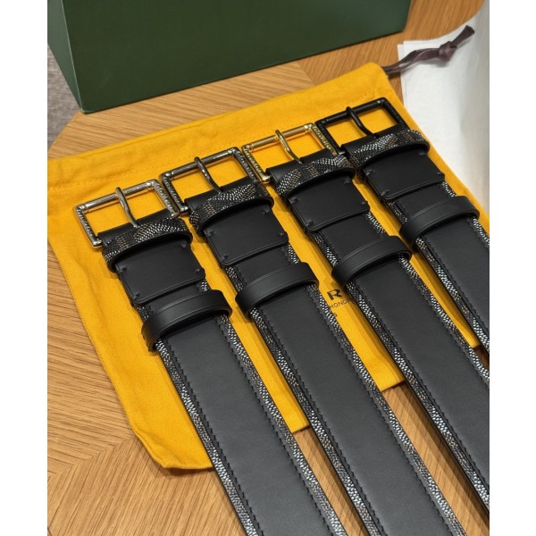 고야드 플로리다 밴드 벨트 FLORIDA 벨트의 폭은 캐주얼한 스타일에 매우 적합하며 여러 장인의 아이디어가 돋보임 롤링 버클에 브랜드 문구가 새겨져 있고 뒷면과 고정 링은 고야드 캔버스를 사용하며 앞면에는 절제되고 우아한 테두리가 달려 있음 롤링 버클은 우리의 FLRIDA 강아지 목걸이에서 영감을 받았으며 각각의 벨트는 피치 하트 보트의 이름을 따서 명명되었음 너비: 4.0cm