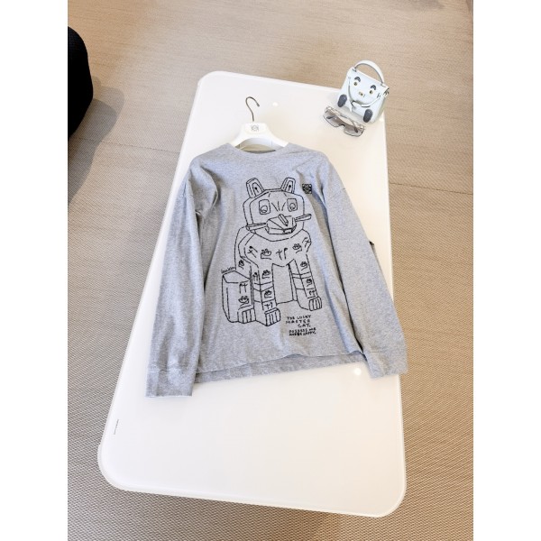 로에베 26S 루이스 웨인 콜라보 그레이 긴팔 캣 티셔츠 영국 아티스트 Louis Wain의 콜라보레이션으로 가볍고 편안한 착용감과 통기성 있는 전면 전폭 고양이 펜슬 자수로 예술적인 느낌을 주는 루즈한 라운드넥 긴팔 디자인