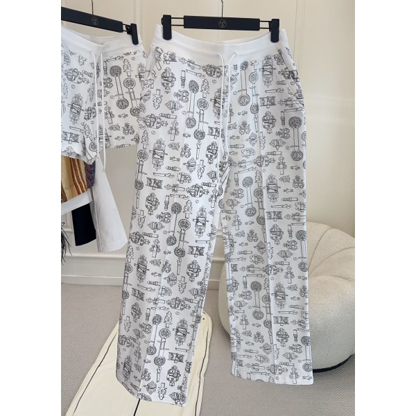 Hermes 2026 초봄 신상 그래피티 프린트 캐주얼 팬츠 투웨이 핏 선택, 화이트 바탕에 블랙 라인 그래피티로 예술성 가득 넉넉한 일자핏+허리밴딩으로 편안한 착용감 얇고 통기성이 좋아 데일리 캐주얼로 집이나 외출시에도 부담없이 소화하실 수 있으며 그래피티 요소가 개성있고 스타일리시하면서 실용적
