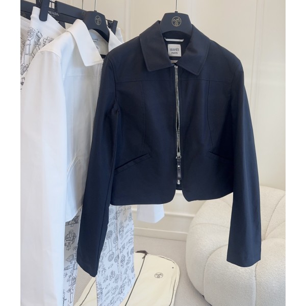 Hermes 2026 초봄의 새로운 짧은 재킷 외투 심플하고 깔끔하며 라인감이 매우 강함 맞춤형 면 원단으로 편안하면서도 힘 있게 착용할 수 있으며 짧은 핏으로 몸매 비율이 매우 두드러짐 하이웨스트 팬츠나 스커트에도 잘 어울림 통근, 캐주얼 모두 소화 가능
