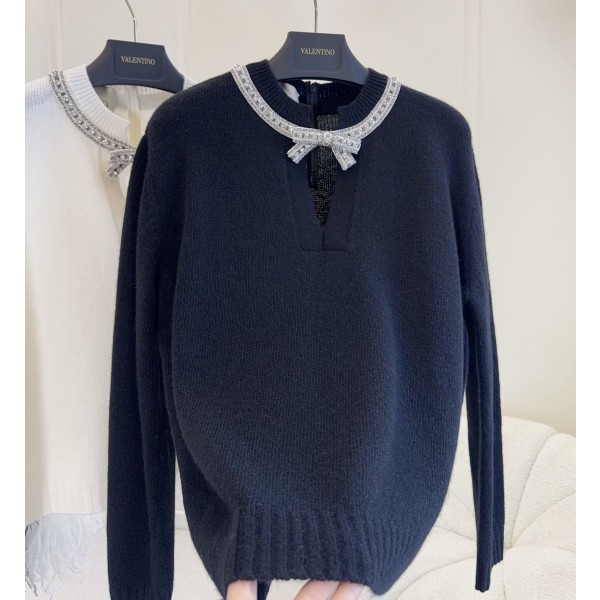 Valentino 2026 초봄 신상 큐빅 리본 니트 100% 울 소재로 부드럽고 편안하며 브이넥 + 비즈 리본 디자인으로 세련되고 통근, 모임, 공식석상까지 부담없이 소화 가능 우아하고 사랑스러운 블랙, 화이트 모두 클래식한 컬러