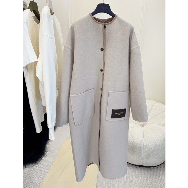 LV 2025 가을과 겨울의 새로운 울 코트 맞춤형 원단, 99% 울 + 1% 실크 혼방 가죽 테두리 처리, 뛰어난 질감 노카라 라운드 디자인+루즈핏 전면의 큰 포켓, 내피 모노그램 올드 자카드, 디테일이 만점 전체적으로 심플하고 고급스러우며 통근이나 공식석상에도 부담없이 고급스럽게 소화 가능