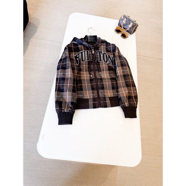 루이비통 26S 올드플라워 후드스트링 체크 자켓 노화 빈티지 모노그램 요소 아카데미룩 고품격 울 혼방 부드럽고 따뜻함 루즈핏 후드집업 가슴 "VUITTON" 레터링으로 인식도 높음