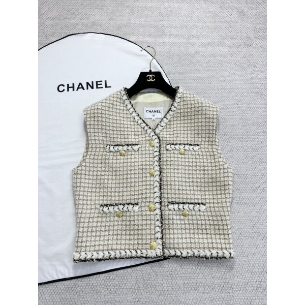 샤넬 25K 살구색 체크 베스트, ZP51500 맞춤 트윌 페플럼 원단, 모든 주머니는 손으로 꿰맴 겉보기에는 똑같은 옷에 아무리 좋은 원단이라도 핏이 제대로 만들어지지 않으면 이 옷은 가치가 없음 우리집은 신경을 많이 써서 매번 여러 번 수정을 거듭해야만 출고 모든 세부 사항은 원본대로 제작됨 안감: 100% 실크 많은 사람들이 사진을 도용하니 주의 깊게 분별하세요 우리의 평판은 일관된 품질로 축적된 것