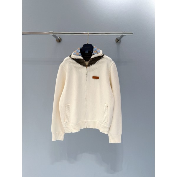 루이비통 26 집업 니트 가디건 울혼방 소재로 부드럽고 따뜻하게 가을겨울에 입기 좋음 화이트 메인 컬러 + 컬러풀한 체크 터틀넥으로 빈티지하고 인지도가 높으며 가슴가죽 로고 지퍼디자인이 편리하며 양쪽 포켓이 실용적이고 멋스러우며 루즈핏으로 남녀 모두 부담없이 소화하기 좋으며 캐쥬얼하거나 가벼운 공식석에도 좋음