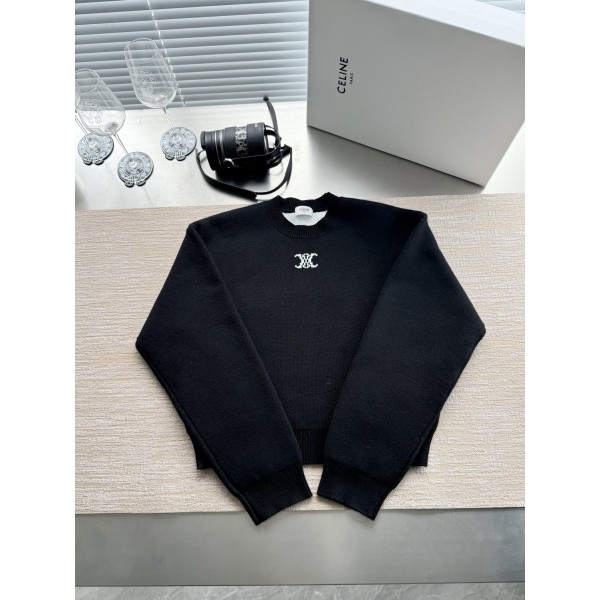 셀린느 25FW 개선문 로고 자카드 라운드 니트 ZP19500 구매 해체 제작 정직 캐시미어 울 혼방 소재, 앞판 장식 박음 색 개선문 로고 자카드 원단과 하나가 되도록 제작 정직 시그니처 골지넥 소매밑단, 초밀도 부분짜임 진정한 1:1copy
