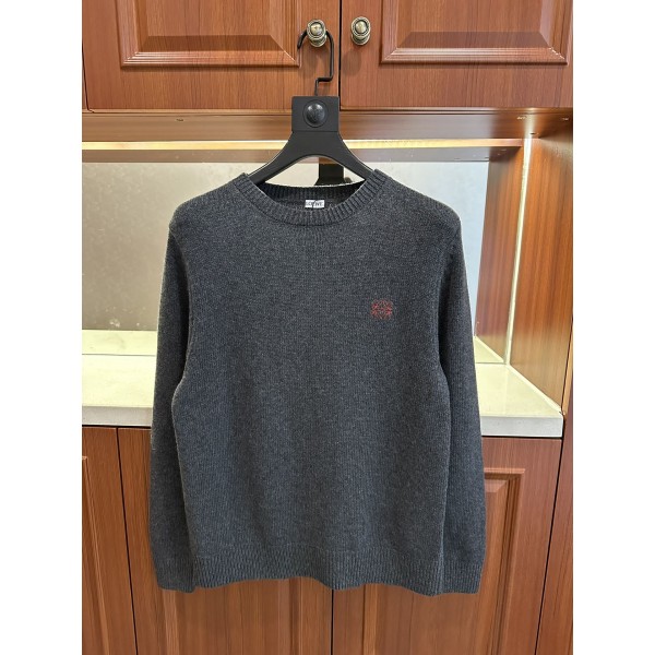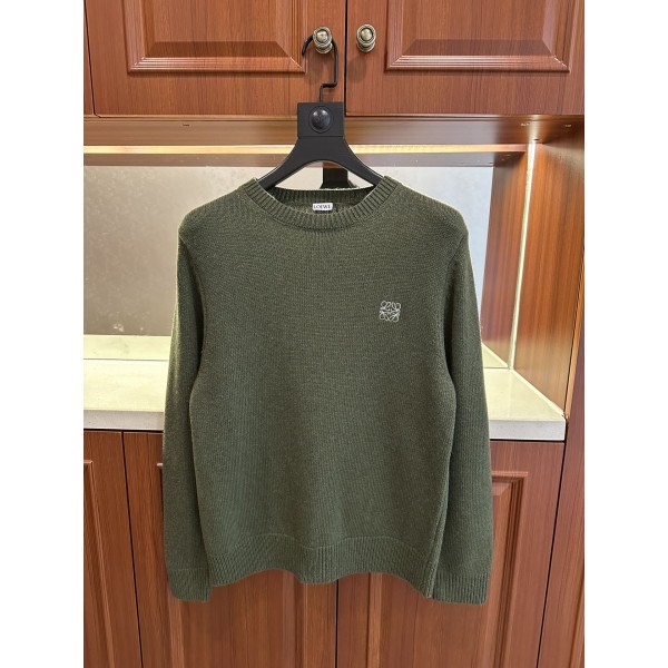 로에베 2025 라운드 니트 스웨터 수입 누드 침봉 울 실 원단을 사용하여 촉감이 부드럽고 편안하며 보온성이 뛰어남 가슴에 브랜드 레터링 로고 만 바늘 자수 로고가 브랜드를 강조 소매와 하단의 니트 골지로 마무리 오리지널 맞춤 제작 삼표가 완비