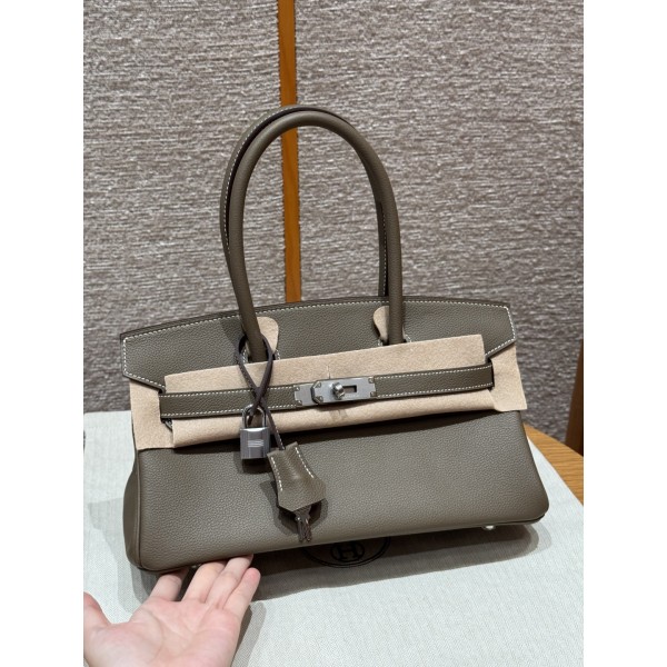 Style:Shoulder Birkin Colour:18/Etoupe Size:29*16*13cm Leather:Evercolor From France Hardware:Silver 숄더버킨29, 코끼리 그레이, eve 가죽 프랑스 수입 순정 소가죽, 실버 버클, 고급 수제 맞춤 제작 주문 실사