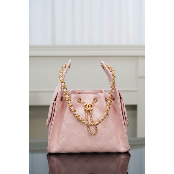 샤넬 25S 크루즈 호보 25백 핑크 이번 시즌 핫 아이템 첫눈에 반한 호보 여심 폭발하는 연핑크, 비주얼이 하늘을 거스름 포켓이 많은 디자인으로 캐주얼한 나른함을 가득 오픈 조절이 가능한 스트링 디자인으로 실용적 쿨걸 필수 아이템 모델번호 AS5293 사이즈: 30x26x14cm