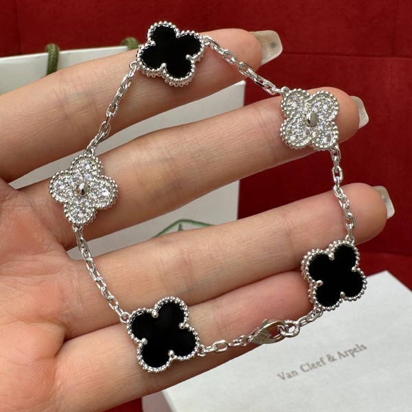 VCA 판다 삼겹살 팔찌, 50주년 한정판 절제되고 차분한 블랙 마노와 럭셔리하게 빛나는 실버 다이아몬드 판다 색상은 사람을 매료시킴 절제하면서도 우아함을 잃지 않으며 더욱 피부가 희고 아름다워 보임