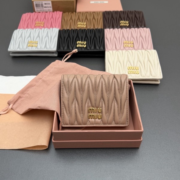 특급 철물 수입 오리지널 가죽 미우미우 마테라쎄 나파가죽 반지갑 독특한 질감을 통해 3D 입체 효과를 교묘하게 연출하며 금속 레터링 로고 장식으로 브랜드의 아이덴티티를 한껏 드러냄 넓은 내부 공간에는 카드 슬롯과 칸막이가 있어 기능성을 강조 모델번호: 5MV204 사이즈 : 8.5 x 11.2cm