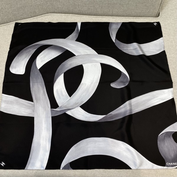 샤넬 26K 스노우 헤어 리본 스카프 코코 네쥬 컬렉션에서 매번 만나볼 수 있는 아이템 심플할수록 클래식, 날렵한 리본 블랙 앤 그레이 톤 소재: 100% 실크 size: 90×90cm