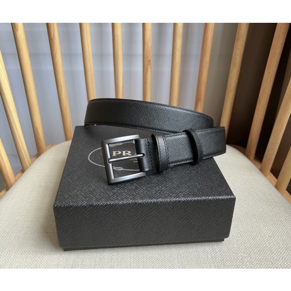 구매대행급 프라다 매장 최신형 벨트 심플하고 세련된 사피아노 가죽 벨트에 메탈 버클 삼각 로고 첨단의 사피아노 가죽으로 왁스 코팅면과 크로스 평행선 무늬가 브랜드의 아이코닉한 소재 남녀공용 폭 3.5cm