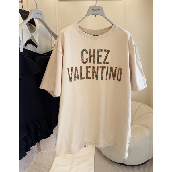 Valentino 2026 초봄 신상 자수 레터링 티셔츠 살구색 순면 소재로 부드럽고 편안하며 일상적으로 착용할 때 매우 친절함 가슴 레트로 레터링, 정교한 자수, 아트적인 느낌 가득 루즈핏으로 포용성이 뛰어나 어디에 매치해도 돋보임 스트리트 패션 + 미니멀한 디자인으로 캐주얼한 스타일링을 완성