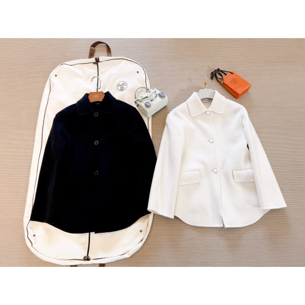 HERMES 26S 오프화이트 투톤 캐시미어 세로줄 숏 코트 고퀄리티 울 캐시미어 혼방으로 부드럽고 따뜻한 느낌을 주며 클래식한 터틀넥 디자인에 에나멜 원버튼 장식이 깔끔하고 짧은 빅포켓으로 실용적이며 트렌디한 통근 데일리 모두 ok