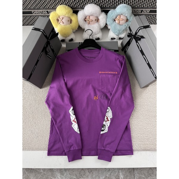 크롬하츠 퍼플 라운드넥 만화프린트 긴팔 티셔츠 ZP3900 원판 구입하여 분해 제작 주문 제작 면 원단 맞춤 제작 원판 주문 실을 사용하여 맞춤 제작 가공 디테일 ZP 98% 환원