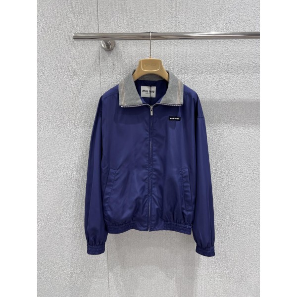 미우미우 초봄 신상 집업 긴팔 칼라 재킷 무광 질감의 윈드스토퍼 나일론 원단을 사용하여 부드럽게 떨어지는 느낌을 주며 다양한 빛 아래에서 섬세한 광택이 남 시그니처 컬러 터틀넥 디자인은 짙은 보라색 톤의 차분함을 깨뜨리고 시그니처 복고풍 학원 분위기를 반영함 루즈한 어깨 커팅과 시보리 소매 및 밑단이 어우러져 몸매를 보정할 수 있을 뿐만 아니라 레이어드 요구에도 적합함