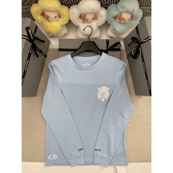 크롬하츠 블루 보검 프린트 라운드 긴팔 맨티셔츠 ZP 4000 오리지널 구입하여 분해 제작 테일러드 면 원단 제작 리얼 오리지널 주문 실을 사용하여 맞춤 출하 디테일 ZP 98% 환원