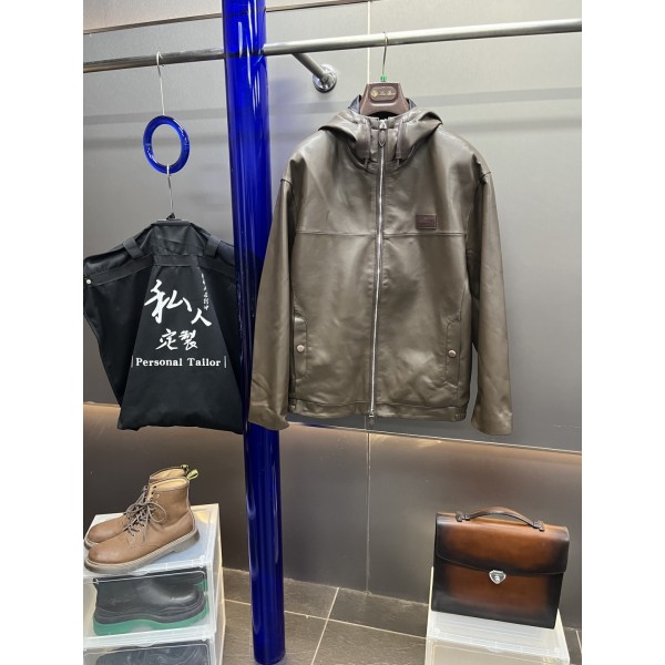 Belruti의 새로운 가죽 후드 재킷 면 양가죽. 캐주얼한 브라운 컬러를 매치하여 일상 생활에서 출근 및 나들이 모두 착용할 수 있음
