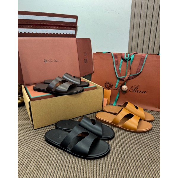 로로피아나 Loro Piana Pilat Plain Walk 남성 슬리퍼 실키한 가죽으로 마무리하여 절제된 여름의 우아한 스타일을 연출 소가죽은 수작업으로 정성스럽게 제작되었으며 표면은 천연의 광택감이 있고 촉감이 매우 매끄러움 겉감: 이태리 수입 소가죽 안감: 이태리 스웨이드 양가죽 밑창: 이태리 A급 리얼 가죽창