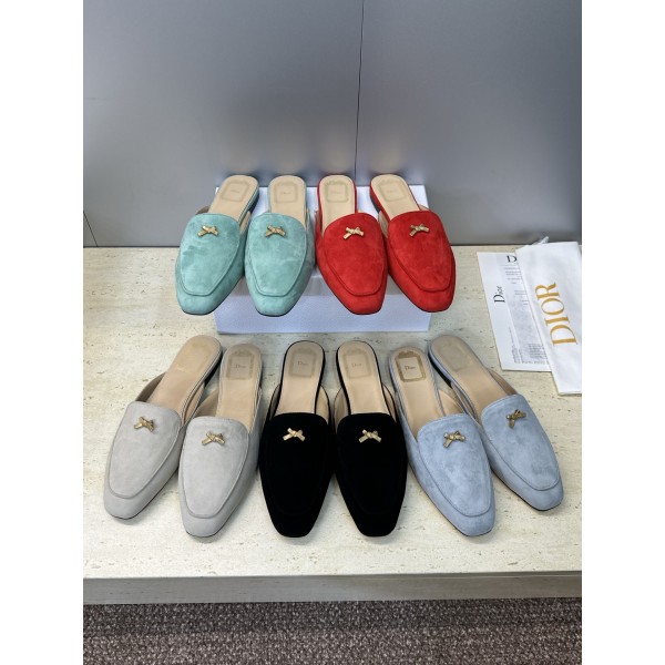 디올 2026 이른 봄 신상 베이비 보우 뮬 슬리퍼 스타 CD 레터링 로고 스틸레터 스퀘어 헤드 패치 오리지널 개발 시판 탑 버전 소재: 바닥 수입 양가죽, 수입 송아지 가죽 물나염 양가죽 안감+이태리 리얼 통굽
