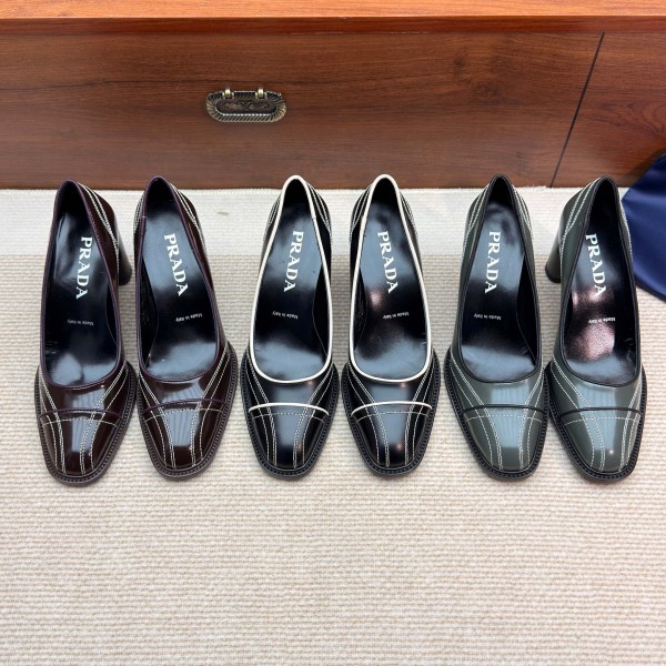 프라다 26ss 봄여름 신상 중굽 통굽 단화 겉감 수입 비딩 안감 징검다리 양가죽 이태리 수입 가죽 아웃솔 굽: 8cm
