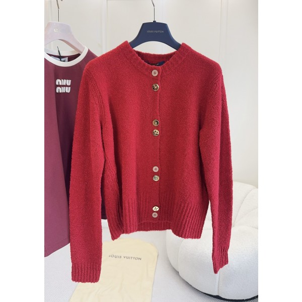 LV 2026 새해 한정 레드 니트 카디건 오리지널 맞춤형 울 혼방, 부드럽고 따뜻함 클래식한 라운드넥+메탈 버튼 디테일이 세련되고 브랜드 감각이 가득 단품이나 레이어드에도 매우 뛰어남