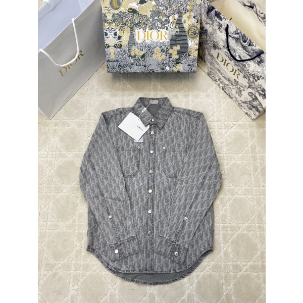 DIOR×KAWS 콜라보 26 봄여름 셔츠자켓 면혼방 데님 오블리크 풀오버 셔츠형 데님 자켓 코트 디올랜드 KAWS 리미티드 라인에서 나온 아우터 셔츠 블루 코튼 혼방 데님 원단으로 정성스럽게 제작 클래식한 Oblique 프린트와 디올랜드 KAWS 자수패치로 뱀의 해 요소로 재해석한 Dior 로고 전품상