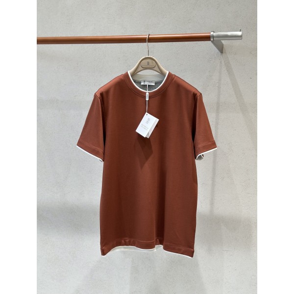 BC 페이크 투피스 라운드 티셔츠 원 스트라이프 프릴 라운드 네크라인 소매 밑단에 페이크 오버랩 가벼운 원단 매끄러운 터치감 기본핏