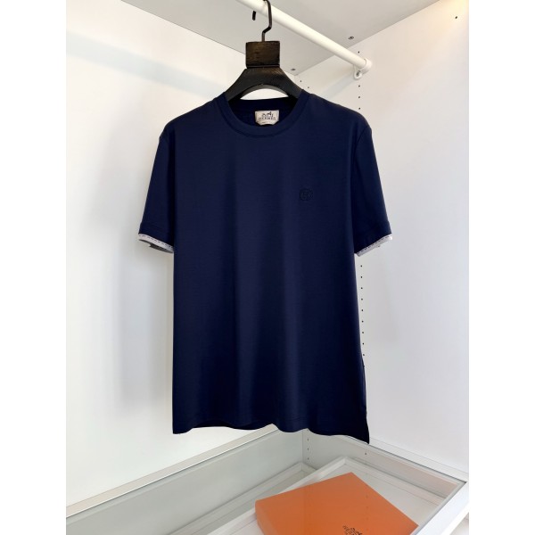 에르메스 2026 봄여름 셀리에르 디테일 라운드넥 반팔티셔츠 클래식한 베이직 이중 프릴 소매 컬러가 들어간 셀리에르 디테일 포인트 디자인 풍부하고 다층적인 디테일이 어우러진 커팅 네크라인이 목 윗부분에 살짝 밀착되어 스타일리시하고 질감이 좋으며 원단은 커팅 전 염색 전 5회 세탁 기준 수축률을 2% 이내로 엄격하게 관리 약간 느슨한 커팅으로 옷차림에 대한 통근자들의 심플한 니즈를 만족시키며 겉감은 하이 실켓 면으로 되어 있음 표면이 광택이 있고 편안하고 매끄러우며 원단이 가공되어 있음