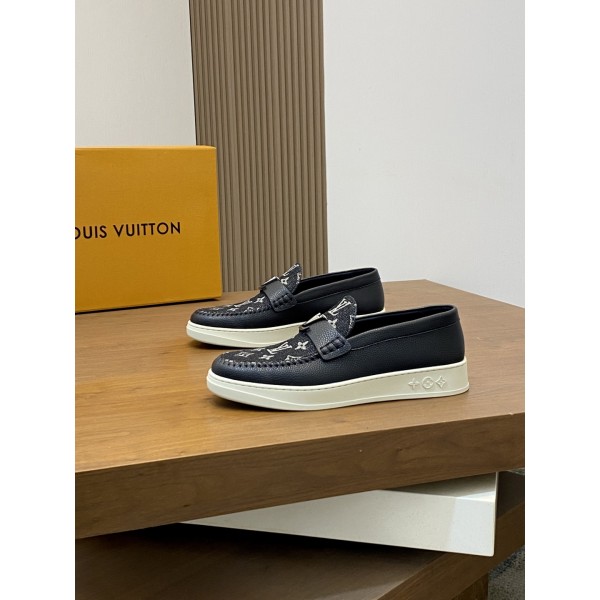 LV 신상품 남성용 고급 로퍼 스니커즈 수입 톱 소가죽 브랜드 lougou 오리지널 초경량 tpu 바닥, 내마모성 편안함 Monogram lougou 포인트 고무 아웃솔 통기망 안감, 클래식한 스타일