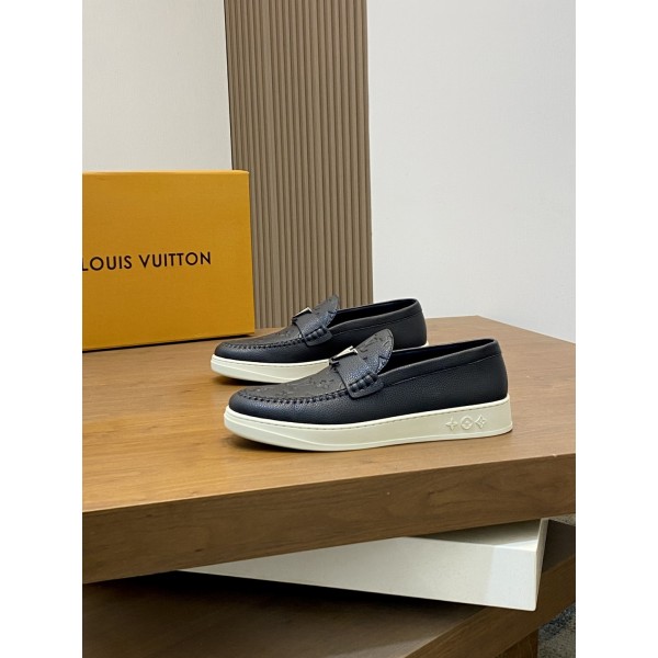 LV 신상품 남성용 고급 로퍼 스니커즈 수입 톱 소가죽 브랜드 lougou 오리지널 초경량 tpu 바닥, 내마모성 편안함 Monogram lougou 포인트 고무 아웃솔 통기망 안감, 클래식한 스타일