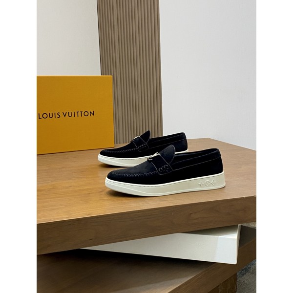LV 신상품 남성용 고급 로퍼 스니커즈 수입 톱 소가죽 브랜드 lougou 오리지널 초경량 tpu 바닥, 내마모성 편안함 Monogram lougou 포인트 고무 아웃솔 통기망 안감, 클래식한 스타일