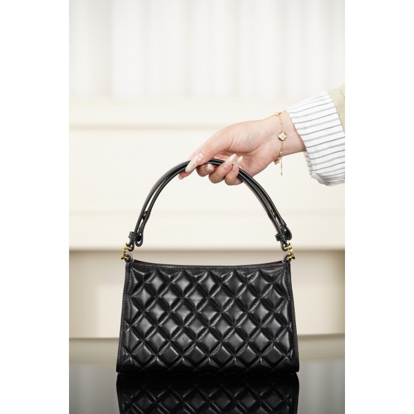 샤넬 26X 크리스마스 에디션 호보백 미니 클래식한 퀼팅은 크리스마스 불꽃을 감싸고 앙증맞고 우아하면서도 약간은 장난스럽고 느슨한 느낌을 줌 골드 컬러의 가죽 액세서리와 블랙 골드 컬러가 고급스러우면서도 리드미컬한 느낌을 주고 크리스마스 분위기와 찰떡궁합 블랙 양가죽은 섬세하고 부드러우며 퀼팅은 탱글탱글하고 탄력이 있음 짧은 손잡이 조절 토트/팔찌 모두 우아함 모델번호: AS6045 사이즈: 14x22.5x7.5cm