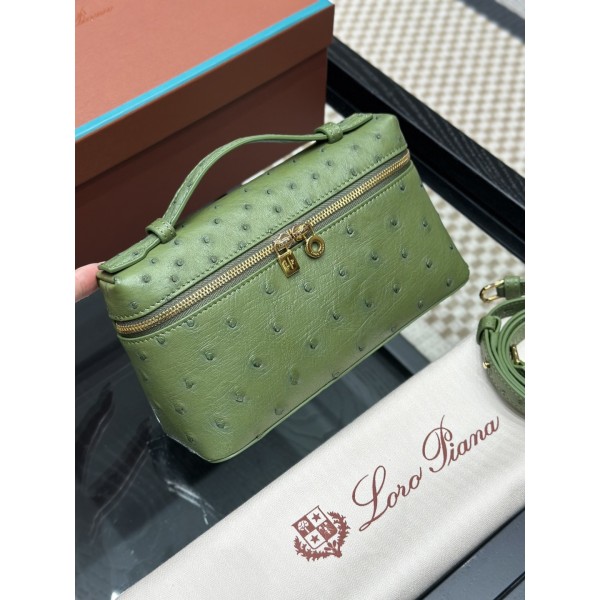 로로피아나 엑스트라 포켓 L19 오스트리치 깊은 이끼 그린, 남아프리카공화국 KK 타조 가죽 레어 가죽은 정말 잠을 못 이룰 정도로 KK는 천장의 존재로 통통하고 부드럽고 가벼우며 결이 독특함 어떤 자리든 다 잘 어울려요 Size:19x11x6.5cm