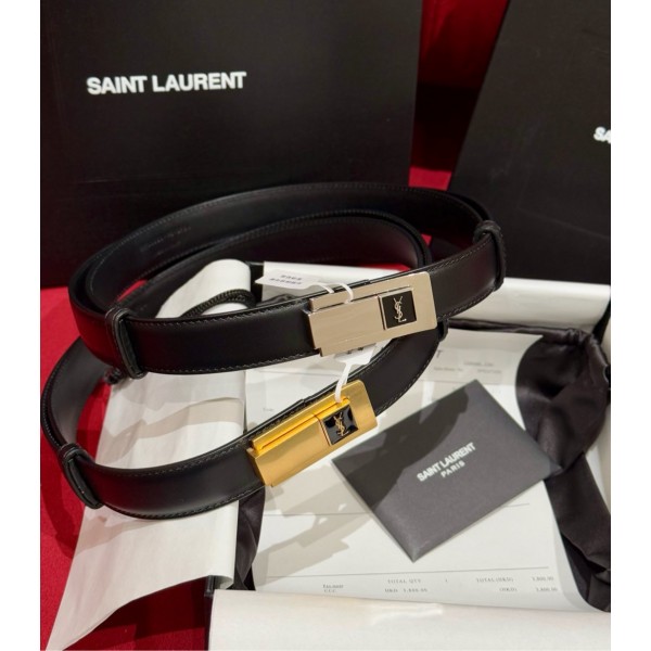 생로랑 버클 여성 벨트 사이즈 조절이 자유로운 심플하고 절제된 가죽으로 짱짱한 터치감 부드럽고 섬세하며 내구성이 좋음 폭 2.5cm 슬림한 허리라인 공식 홈페이지 뉴타입