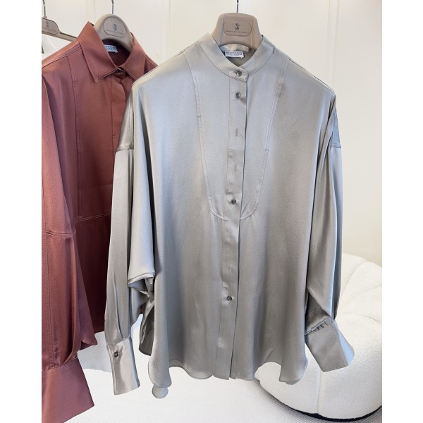 Brunello Cucinelli 2026 봄여름 신상 실크 블라우스 새틴 뽕나무 실크, 부드럽고 매끄러운 촉감 연회색 그린 톤의 초질감. 차이나카라+루즈핏으로 우아하고 편안하며 일상적인 통근이나 바캉스에도 부담없이 소화가능 세련된 컷팅과 절제된 럭셔리 스타일로 머니 룩을 완벽하게 표현 가볍게 get하여 고급스럽게 연출하실 수 있음